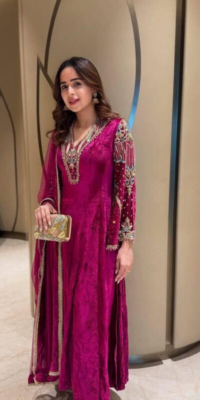 Rani Pink Velvet Embroidery Zari Work Salwar Suit