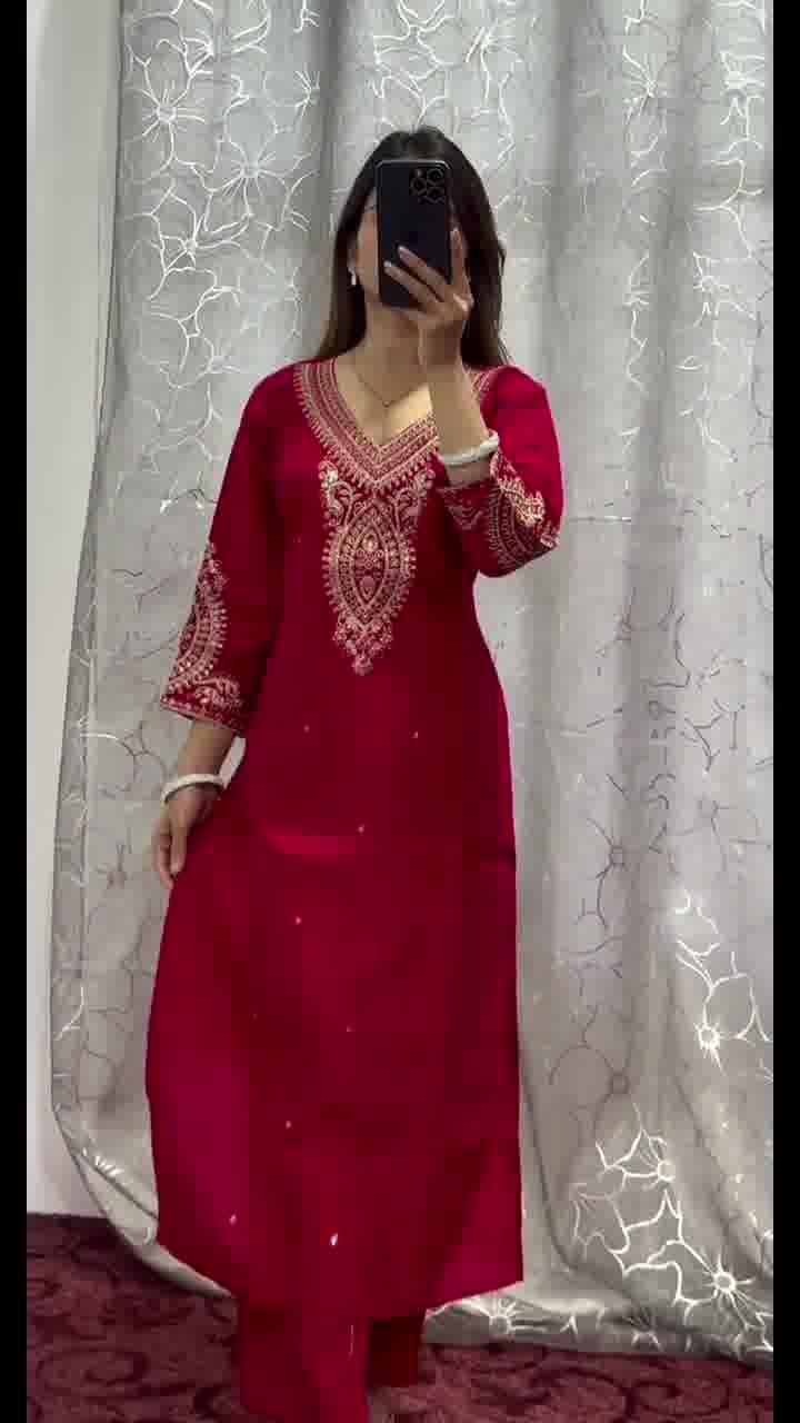 Red Chinon Sequence Coding Dori Work Salwar Suit