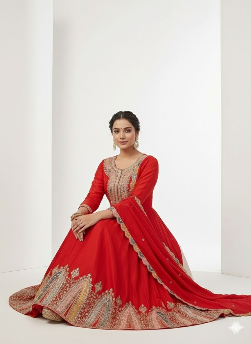 Dupatta Fabric : Heavy Chinon Silk With Heavy Multi Thread Embroidery Sequence Work |