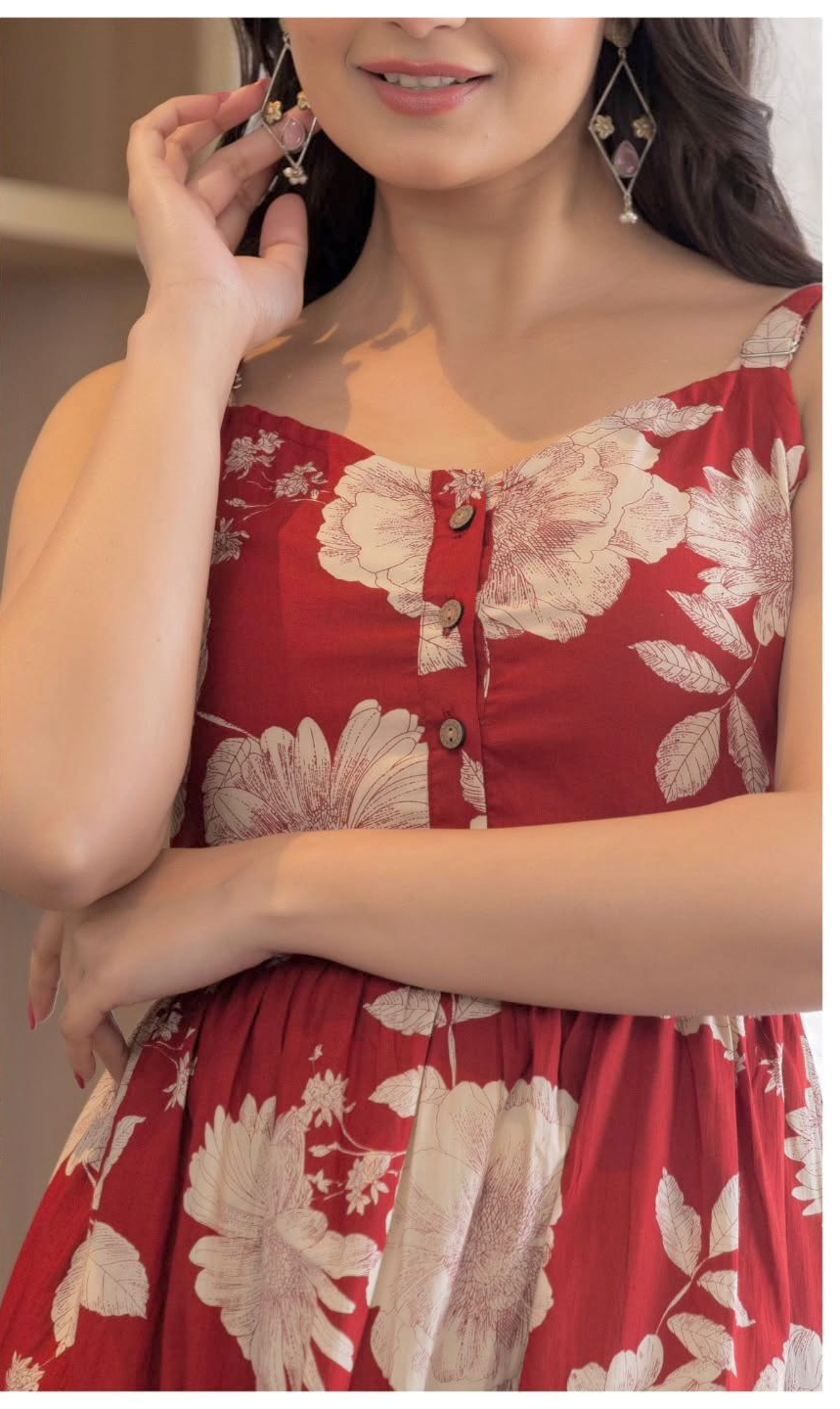 INLI Coral Red Color Cotton With Printed Designer Work Gown . Wedding, Party, Festive, Events, Grab it for ₹1449. Delivery 4-6 Working Days. Shop now. | Gowns, Bollywood Gowns, Creative Gowns, Designer Gowns, Embroidered Gowns, Party Wear Gowns