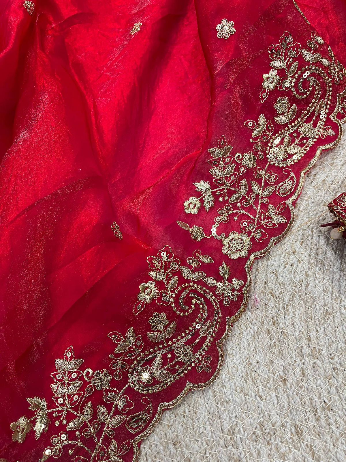 Blouse Work: Designer Embroidery Work Of Jaro Thread & 3 mm Sequins With Pears Work(Same Is A Picture)