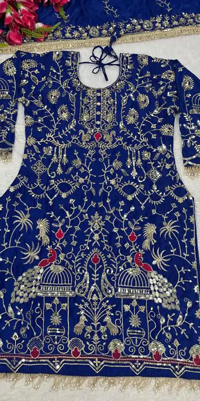 Royal Blue Natural Crep Embroidery Work Salwar Suit
