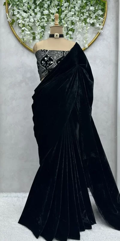 Blouse: Matching blouse piece with zari work on the sleeves and a coordinated woven border, perfectly complementing the saree.
