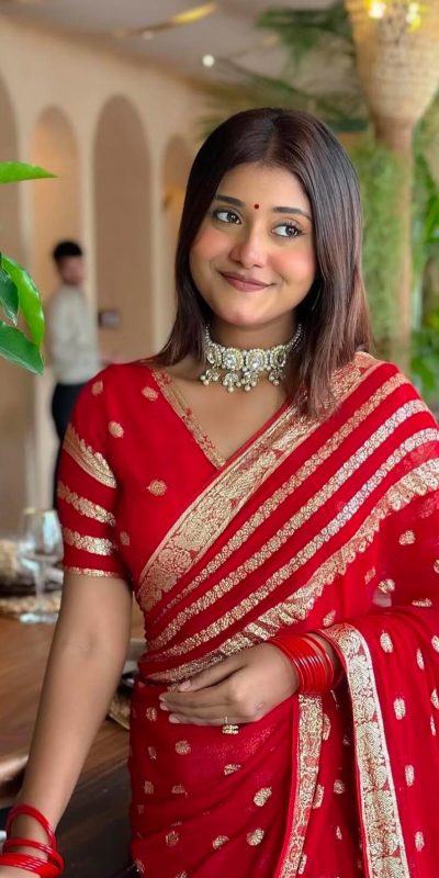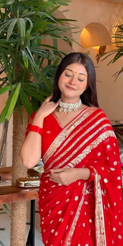 MS Pani Red Color Viscose Georgette With Pure Jacquard Zari Saree Casual, Wedding, Festive, Events . Expected Delivery 4-6 Working Days @1599/- only