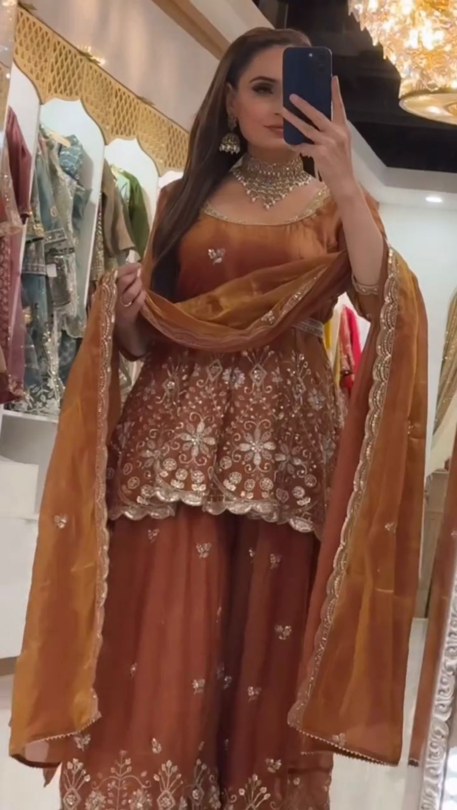 Rust Fendy Silk Sequence Work Salwar Suit
