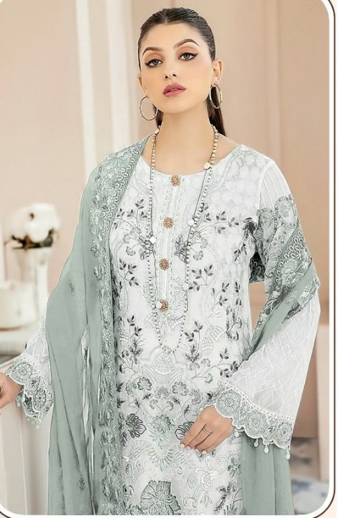 Fabric Details :- Top :-Heavy Georgette With Embroidery work -Zarkan Sleeves :-Heavy Georgette With Embroidery work Inner :-Dull Santoon Bottom :-Dull Santoon Dupatta :-Heavy Georgette With Embroidery work Length :- Max up to 41 Size :- Free Size Semi Stitched Type :- Semi Stitched (Material)