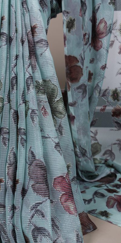 Sea Green Lurex Brasso Floral Saree