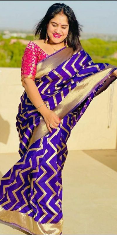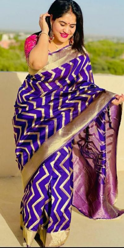 Shilpa Shetty Violet Soft Lichi Silk Cloth Jacquard All Over Saree