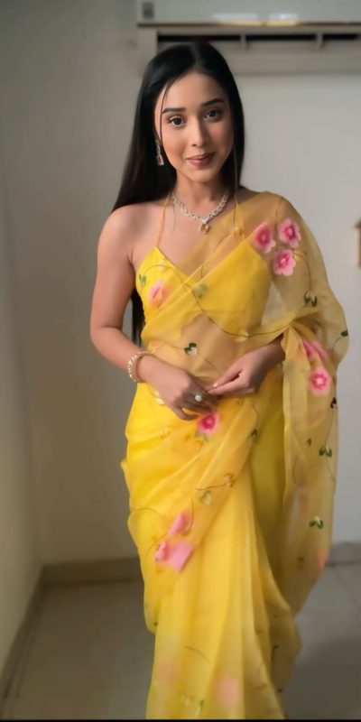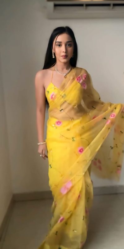 | Fabrics | Saree Fabric : pure soft Organza silk Saree Work : All over the body Saree : 5.5 Mtr Blouse Fabric :Yellow Blouse Blouse : 0.80 Cmtr Ready To Wear saree |