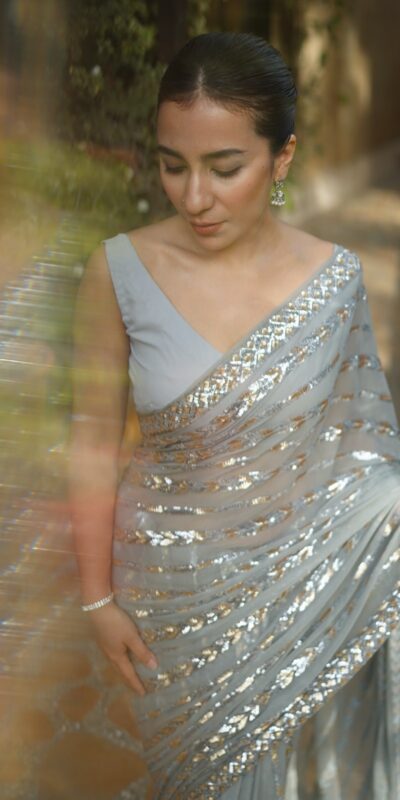 Saree Work- Embroidery Dual Sequence Work & Lace With Piping