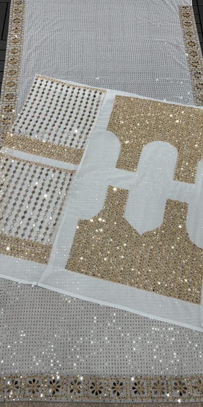 Original Mirror Work Done In Lace Border,blouse & Sleeves