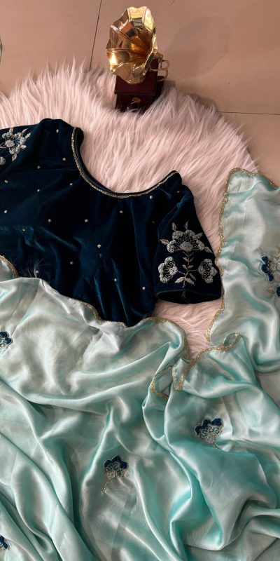 Sky Blue Rangoli Silk Lace Resham Work Saree