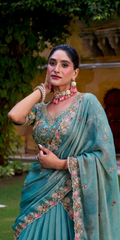 Sky Blue Shimmer Sequins Thread Work Lehenga Choli