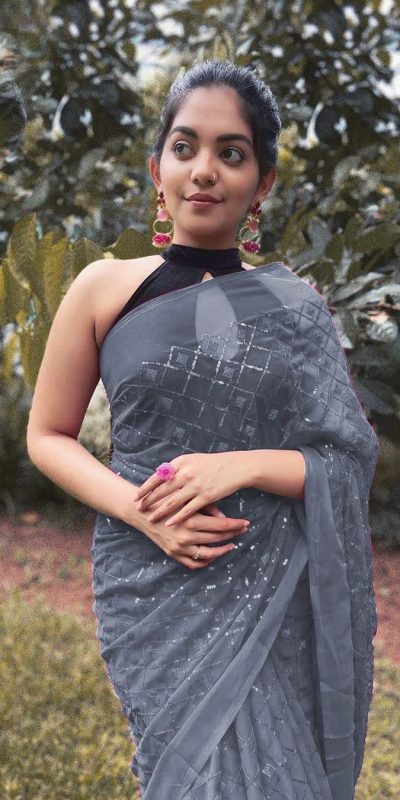 KT 201 Cement Color Georgette Fancy Sequence Work Saree Casual, Party Wear, Wedding Expected Delivery 4-6 Working Days@1649/-
