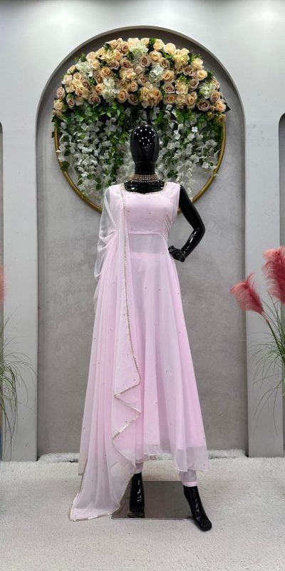 Stylish Pink Color Georgette Handwork Diamond Work Salwar Suit