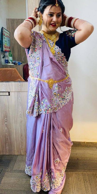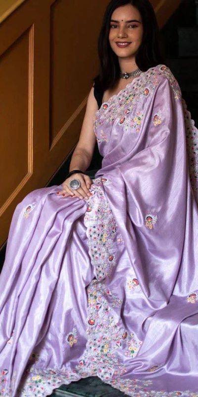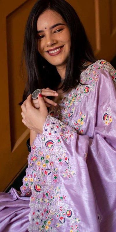 ST 328 Violet Color Vichitra Silk Cotton Embroidery Work Saree Casual, Wedding, Party, Festive, Events Etc. Expected Delivery 4-6 Working Days @1999/-