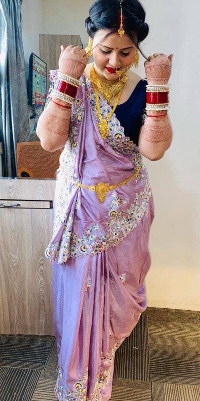 | Fabrics | Saree : Vichitra Silk Work:- Cotton Thread & Dori Embroidery Work With Cut Work Blouse: Mono Banglory Work:- Full Embroidery Front Side & Sleeve / 0.80 Meter Unstitched |