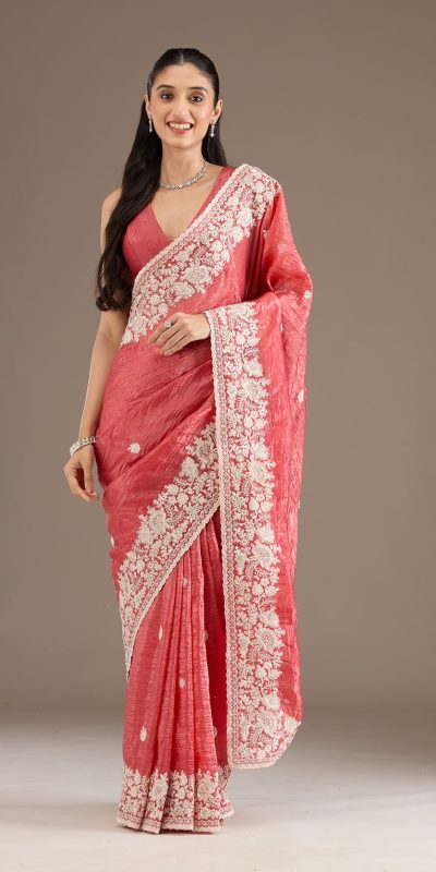 | Fabrics | Saree Fabric : Premium Gold Crush Saree Work : Heavy Embroidery Codding & Sequins Work With Fancy Cutwork Border Saree 5.50 MTR Blouse Fabric : Premium Gold Crush |