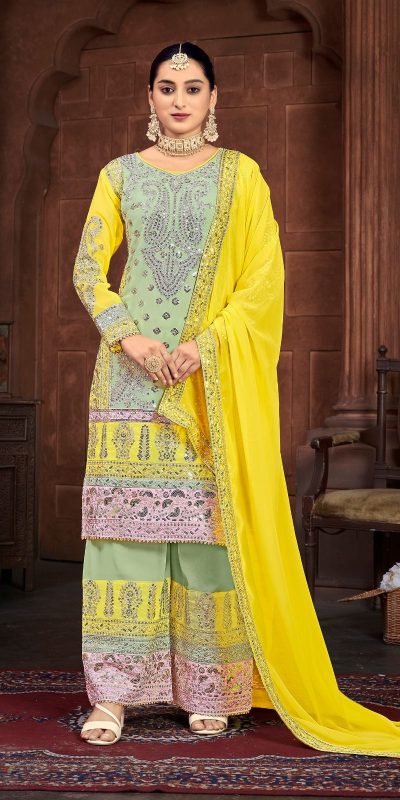 Palazzo Fabrics :Heavy Faux Georgette With Embroidery 5mm Sequence Work