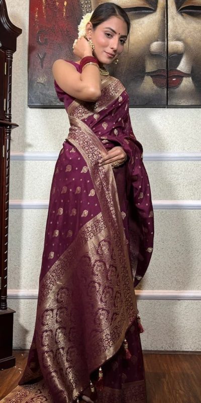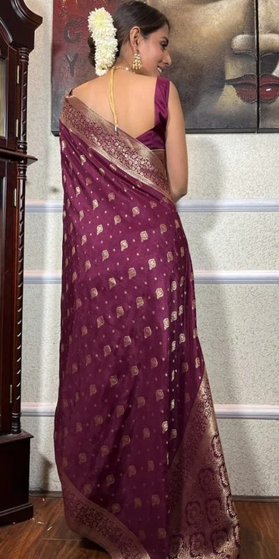 DDF 128 Purple Color Banarasi Soft Silk Extra Ordinary Design Saree Casual, Party Wear, Events, Festivals Etc. Expected Delivery 4-6 Working Days 1399/-