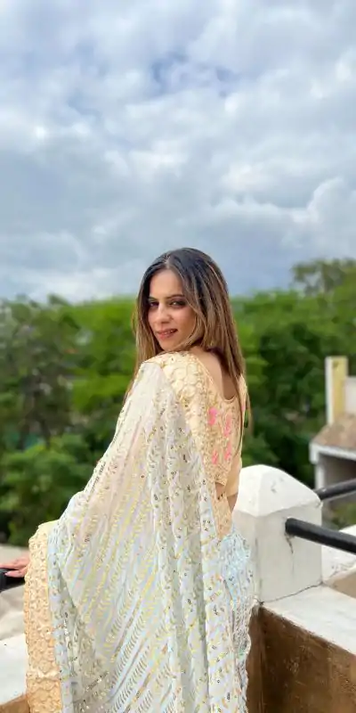 JR 585 White Color Georgette Embroidery Sequence Piping Saree Casual, Wedding, Festive, Events Expected Delivery 4-6 Working Days @1949/-