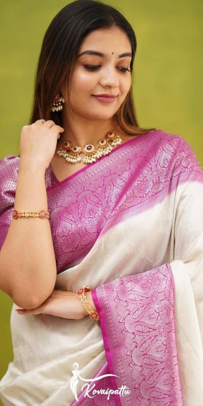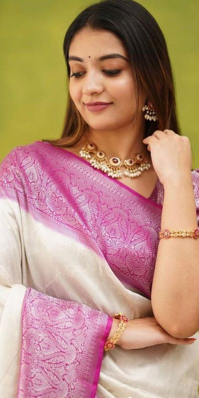 KP 5057 White Color Soft Lichi Silk Jacquard On All Over Saree Casual, Party Wear, Wedding, Events Etc. Expected Delivery 4-6 Working Days @1499/-
