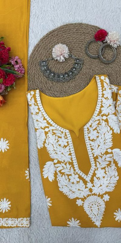KD 1382 Yellow Heavy Rayon Chain-Stitch Sequence Salwar Suit Casual, Party, Wedding, Festive, Events Etc. Expected Delivery 4-6 Working Days @1699/-