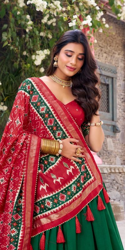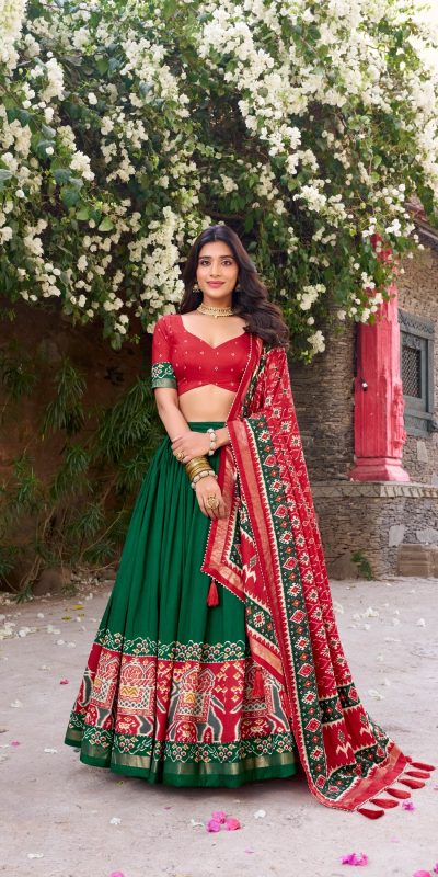 LNB 1221 Green Color Tushar Silk Patola Printed Lehenga Choli Casual, Wedding, Party, Festive, Events Etc.4-6 Working Days@ 2249/-only