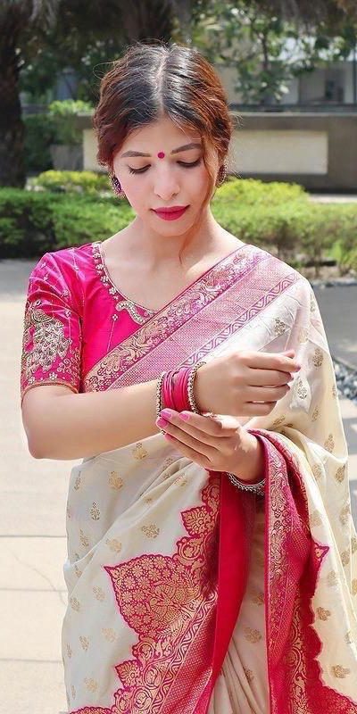 Superb Half White Color Soft Lichi Silk Jacquard Work On All Over Saree