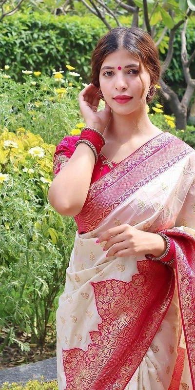 KP 4095 Half White Color Soft Lichi Silk Jacquard Work On All Over Saree Casual, Wedding, Festive, Events . Expected Delivery  4-6 Working Days @1499/- only