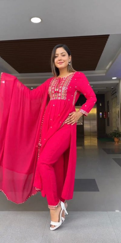 | Fabrics | Top :- :Heavy Faux Georgette With * Embroidery Sequence Work* With Full Sleeves and fancy latkan dori