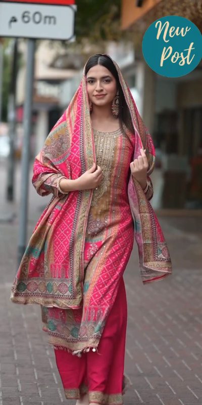 LG-1834 Pink Color Maslin Embroidery Printed Mirror Salwar Suit Casual, Wedding, Festive, Events Expected Delivery 4-6 Working Days @1899/-
