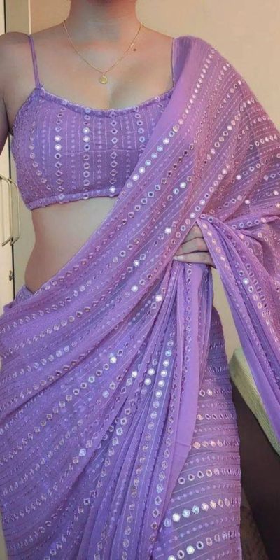 | Fabrics | Saree :Faux Georgette Work :Embroidery Cotton Thread With Foil Paper Mirror All Over Work Blouse: Georgette Work:- Full Embroidery Work Front & Back/0.80 Meter Unstitched |