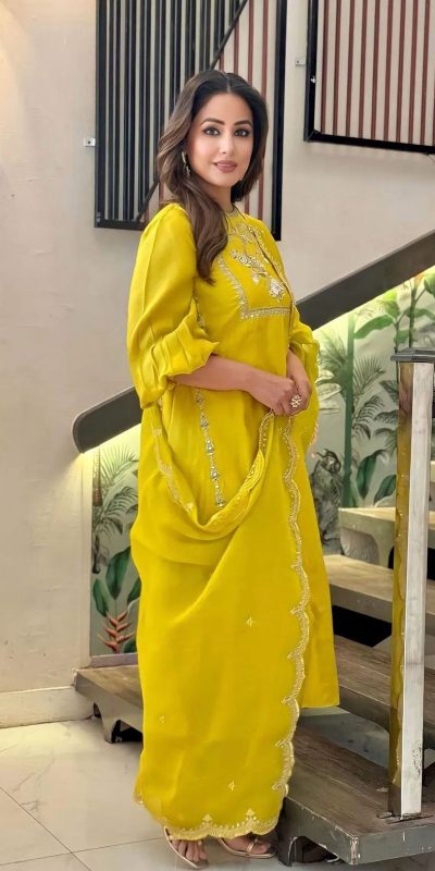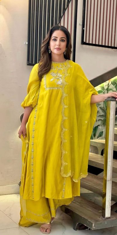 SRK 5155 Yellow Color Pure Chinnon Silk Embroidery Sequence Salwar Suit Wedding, Party, Festive, Events Expected Delivery 4-6 Working Days @ 1849/-