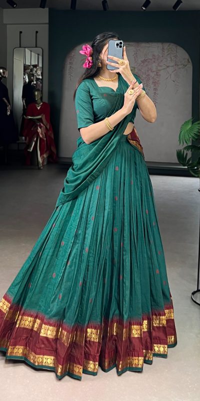 Teal Pure Chanderi Zari Work Lehenga Choli