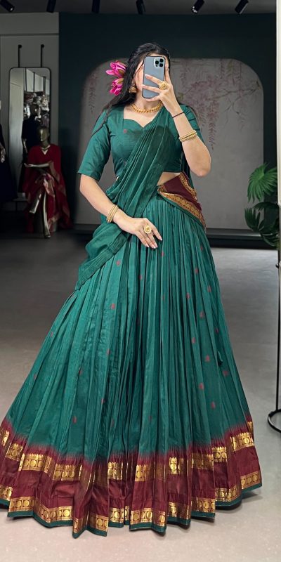 Teal Pure Chanderi Zari Work Lehenga Choli