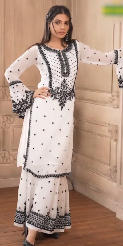 Work:- Heavy Embroidery with Thread & Sequence Work with flair top