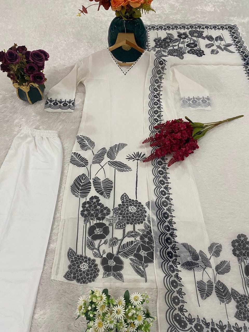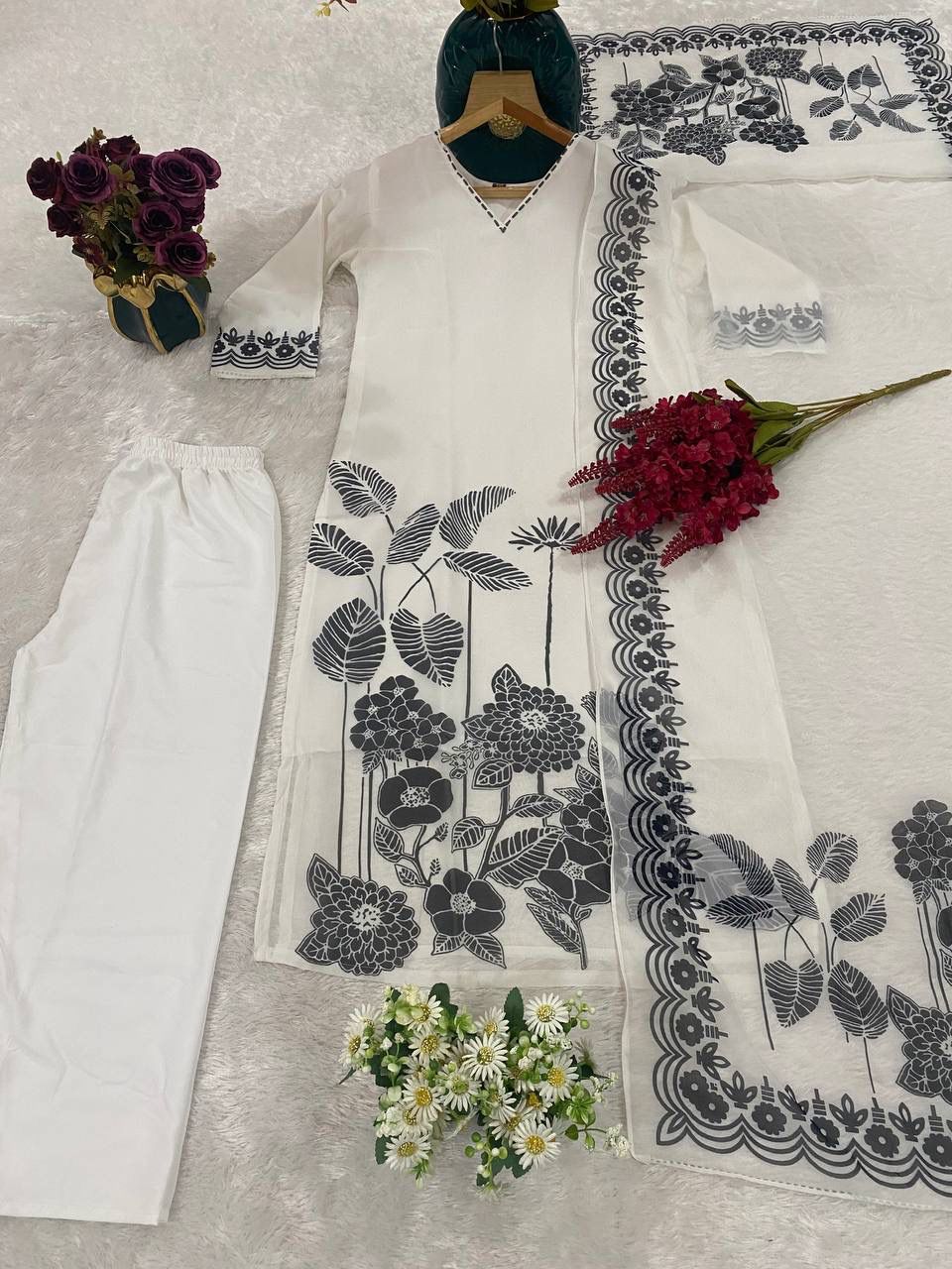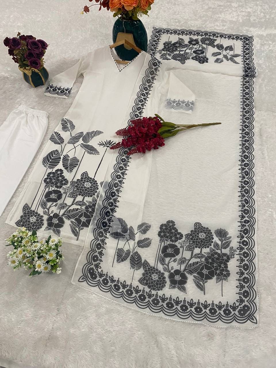 White Georgette Digital Print Salwar Suit