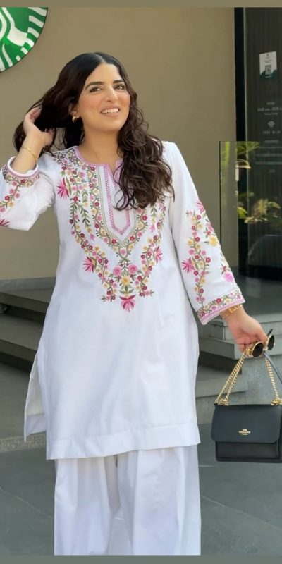 White Natural Crep Silk Embroidery Work Salwar Suit