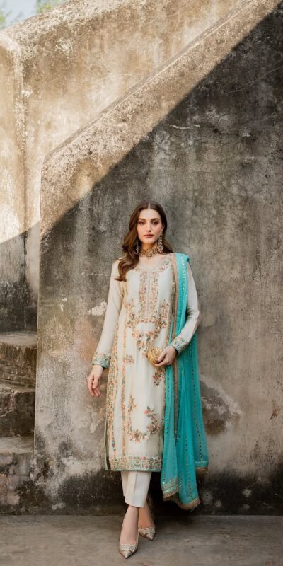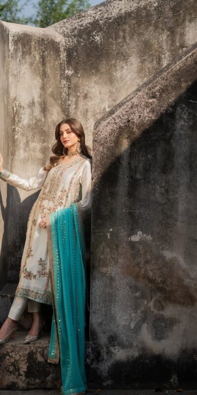 White Organza Silk Embroidery Lace Work Salwar Suit