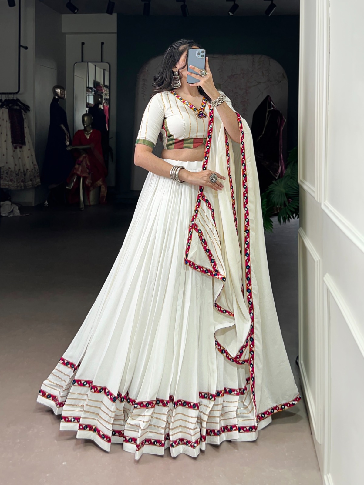 LNB 1659 White Color Pure Rayon With Mirror Work & Gamthi Work. Lehenga Choli Price ₹4199.Introductory Delivery 4-6 Working Days. Shop now. | Lehenga, Bollywood Lehenga, Creative Lehenga, Designer Lehenga, Embroidered Lehenga, Party Wear Lehenga