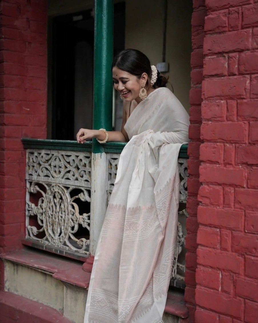 KP 6012 White in Soft Lichi Silk Lace Border & Lace Work Saree . Available at ₹1399 only. Delivery 4-6 Working Days. Shop now. | Designer Sarees, Sarees, Bollywood Sarees, Creative Sarees, Embroidered Sarees, Ethnic Saree, Modern Digital sarees, Party Wear Sarees