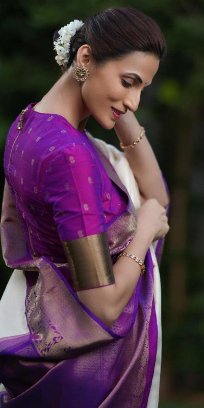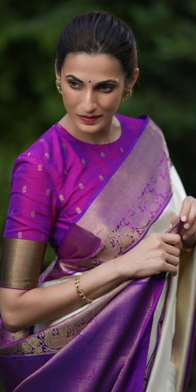 White Soft Lichi Silk Cloth Lace Border Work Saree