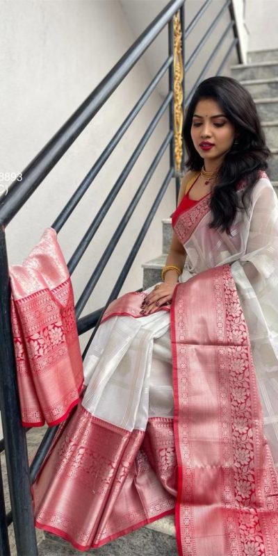 White Soft Lichi Silk Lace Work Lace Border Saree