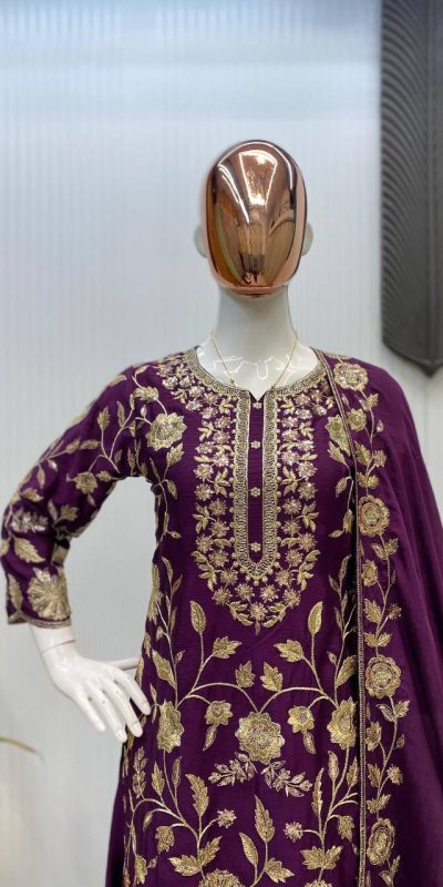 Wine Chinon With Lace Embroidery Work Salwar Suit