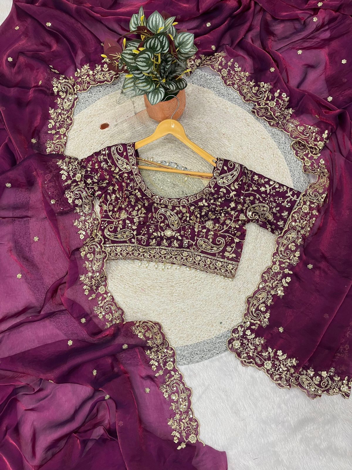 Blouse Work: Designer Embroidery Work Of Jaro Thread & 3 mm Sequins With Pears Work(Same Is A Picture)