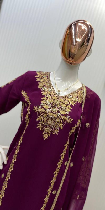 Wine Georgette Embroidery Work Salwar Suit