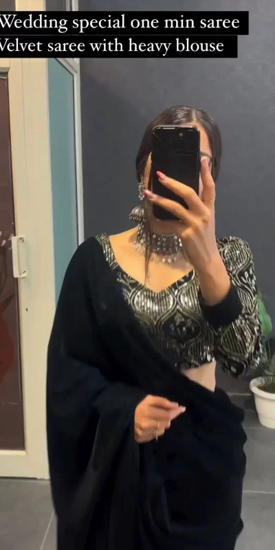Blouse: Matching blouse piece with zari work on the sleeves and a coordinated woven border, perfectly complementing the saree.