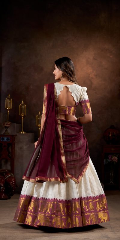 White Poly Cotton Chex With Zari Weaving Work Lehenga Choli