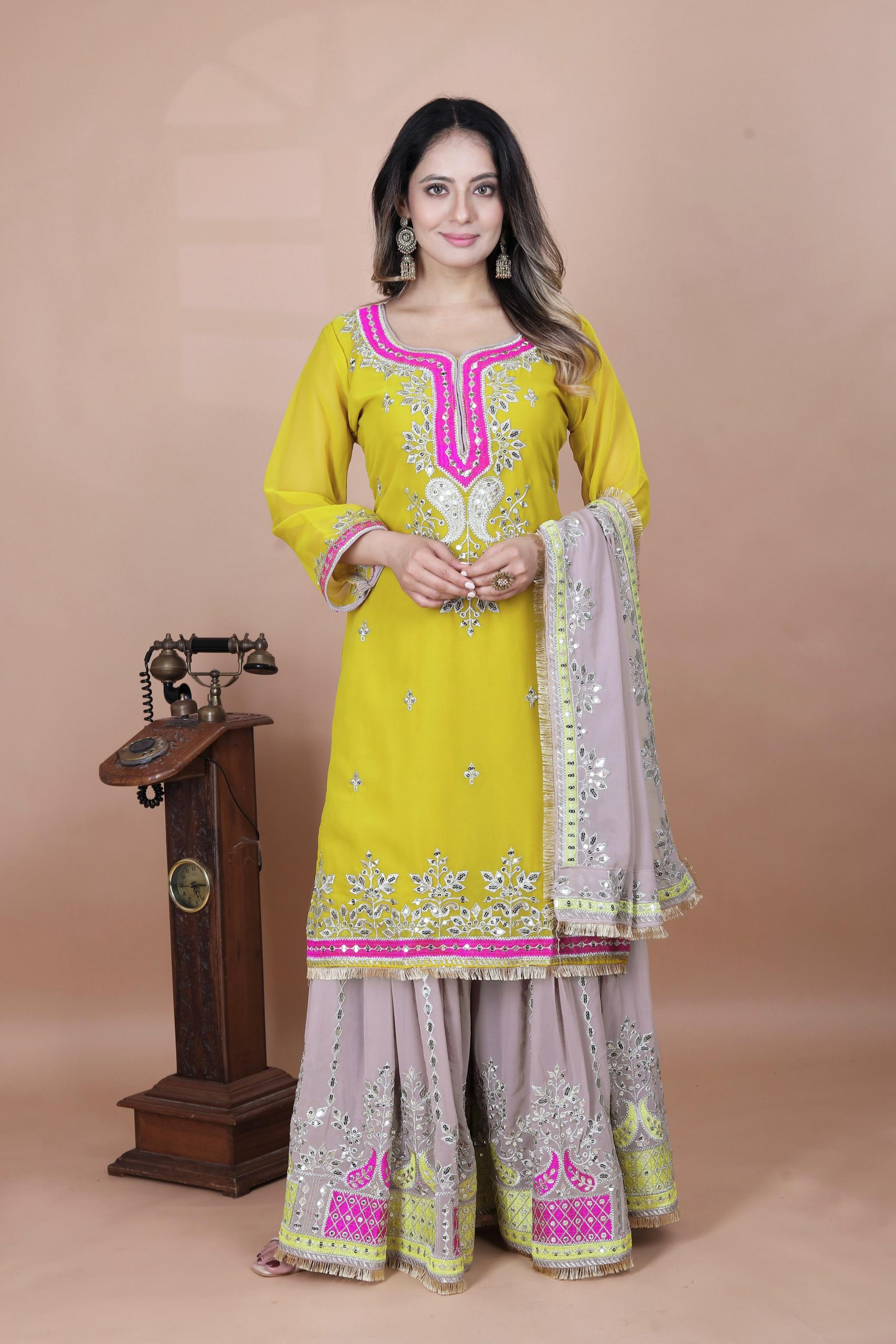 Yellow Faux Georgette 5mm Embroidery Salwar Suit
